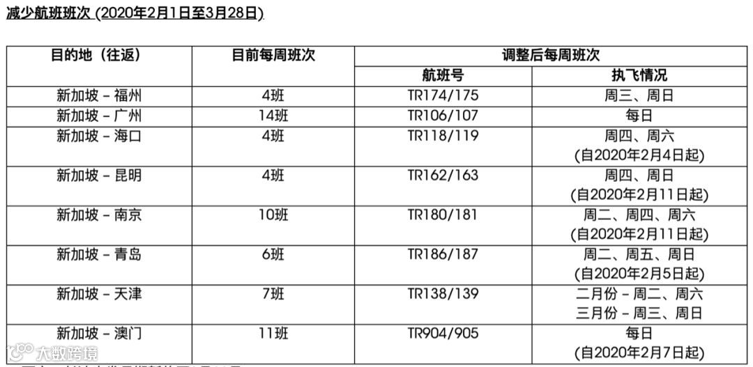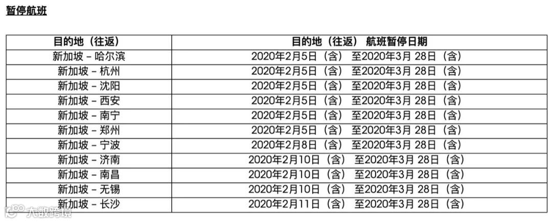 川航:新加坡成都,2月4日-3月28日全部取消;