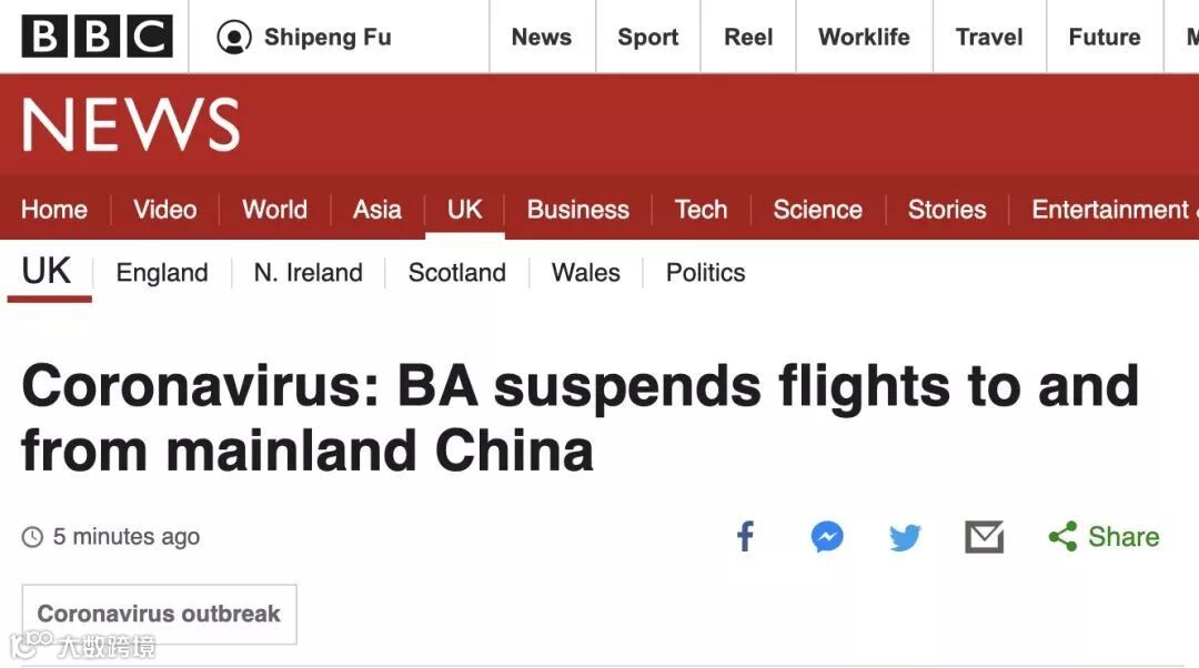 日前英国航空公司(British Airways)宣布,暂停所有英国和中国之间的直飞航班至2020年3月1日。