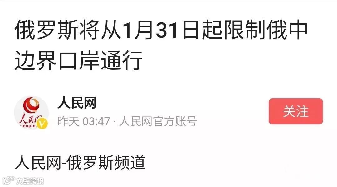 受新型冠状病毒疫情影响,俄罗斯关闭远东地区边界严防病毒传播,同时收紧针对中国公民的签证发放。俄罗斯总理米舒斯金1月30日签署命令,关闭远东地区边界。相关命令涉及俄罗斯与中国边界上的16个通关口岸从1月31日起将被关闭,包括汽车和火车通关口岸。