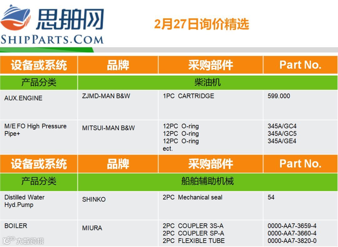 02-27询单精选 |登录ShipParts.com了解更多 思舶