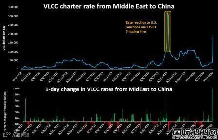 图:中东至中国航线的超大型油轮(VLCC)包租费率飙升