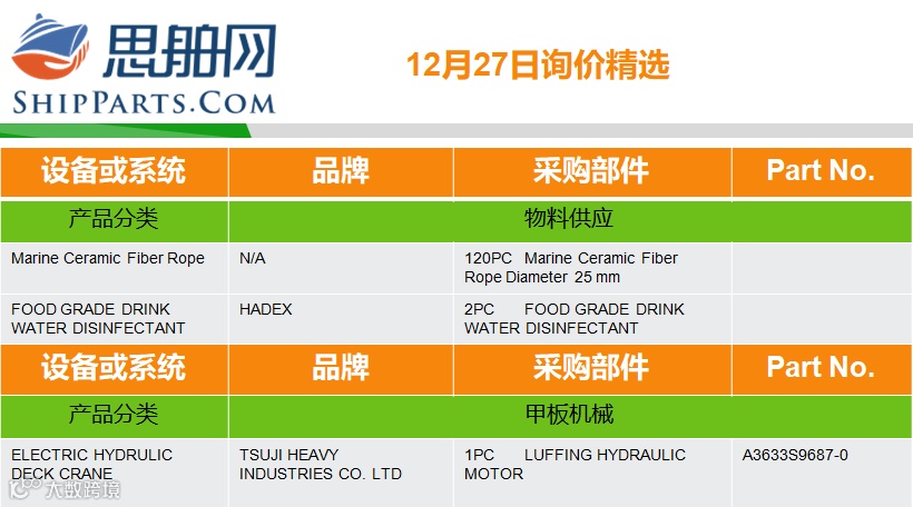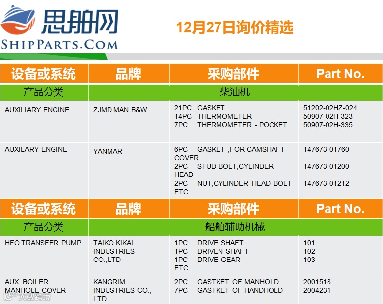 12-27询单精选 |登录ShipParts.com了解更多
