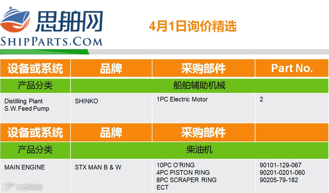 04-01询单精选 |登录ShipParts.com了解更多 思舶