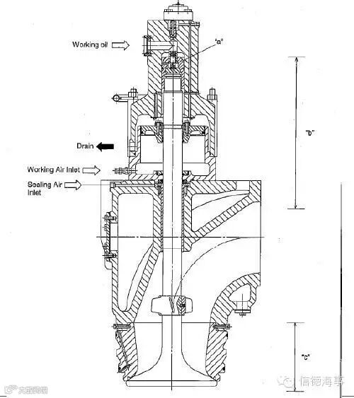 一种为油密封单元,另一种为气密封单元。油密封单元装在排气阀起吊环的下部,通过一节流孔从启阀系统中引出一小部分滑油。这部分滑油再经过密封油控制单元由外接管路到达阀杆及导套之间,在阀杆利导套之间形成一层油膜起润滑和密封作用。这部分滑油是要顺阀杆下行而消耗掉的,一般每天的消耗量在0.7~1.3kg/缸。