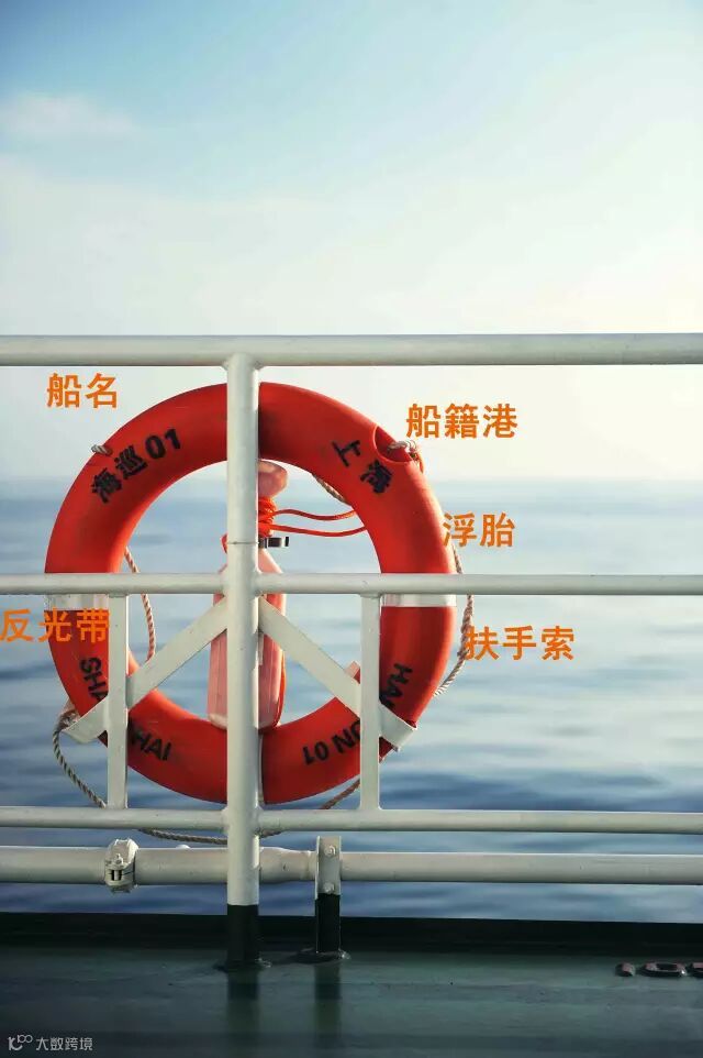 2. 每个救生圈上都标识有其所属船名和船籍港。