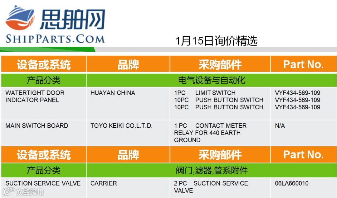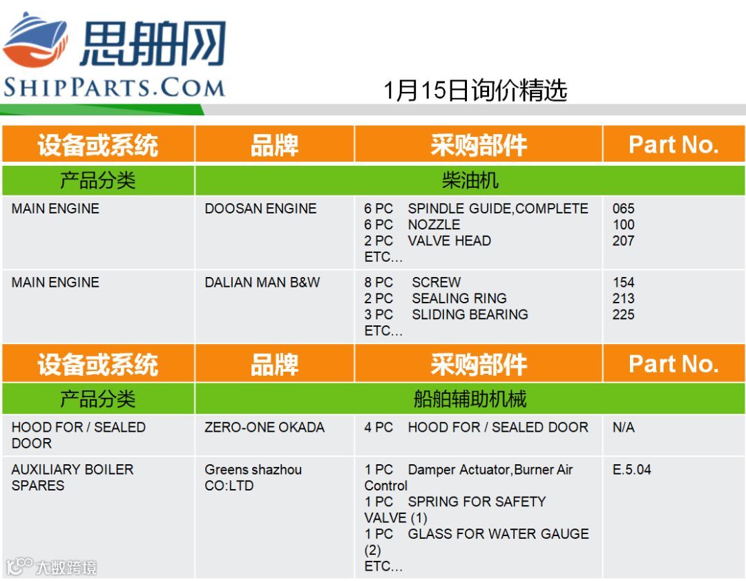 01-15询单精选 |登录ShipParts.com了解更多 思舶