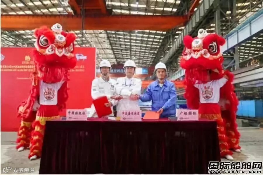 12月6日,由中国船舶集团有限公司旗下广船国际有限公司为中远海运特种运输股份有限公司建造的50000吨半潜船举行开工仪式。日本日挥株式会社(JGC)副总裁TsutomuAkabane 为该船点火开工,中远海特总经理陈威与广船国际党委书记、董事长陈忠前共同见证。中远海特驻厂组组长李拥政、中国船级社项目经理梁亮文、广船国际项目经理林九悦代表三方在本船开工证明文件上签字。