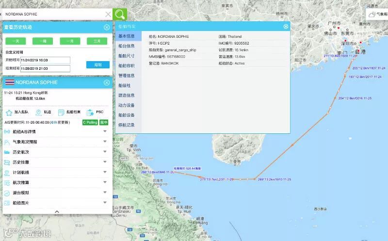 NORDANA SOPHIE的AIS轨迹 (截自HiFleet)
