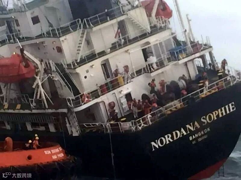 据外媒报道,今天早晨一艘杂货船NORDANA SOPHIE轮在越南的贡安港(VUNG ANG)锚地发生机舱进水事故,船体严重倾斜,船上18名海员成功逃生。