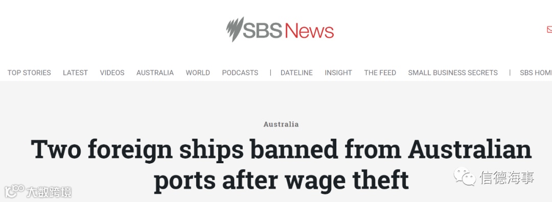 据多家澳大利亚当地媒体报道,因海员举报有拖欠工资的行为,澳大利亚当局对两艘非本国旗船舶进行了出发,包括禁止在一定时间内靠泊澳大利亚港口。