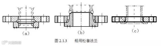 松套法兰的形式也有好几种,主要有船用搭焊钢环松套钢法兰、船用对焊钢环松套钢法兰、船用焊接铜环松套钢法兰、船用铜管折边松套钢法兰等。图2.1.3所示的松套法兰就是常用的三种形式。