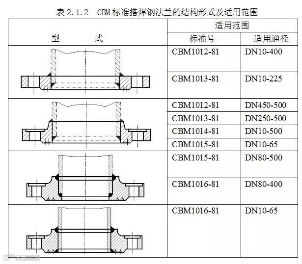 另外,在JIS标准中,同一压力级的钢法兰可能有不同的结构形式;不同压力级的钢法兰的结构形式可能是相同的也可能是不同的。见表2.1.2。