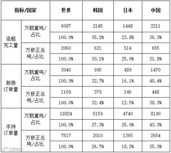 1~7月,我国造船完工量、新接订单量、手持订单量分别占世界市场份额的36.3%、48.4%和43.9%。