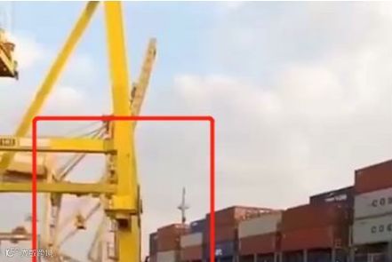 ▲上个月广西防城港事发地点,港口龙门吊被撞