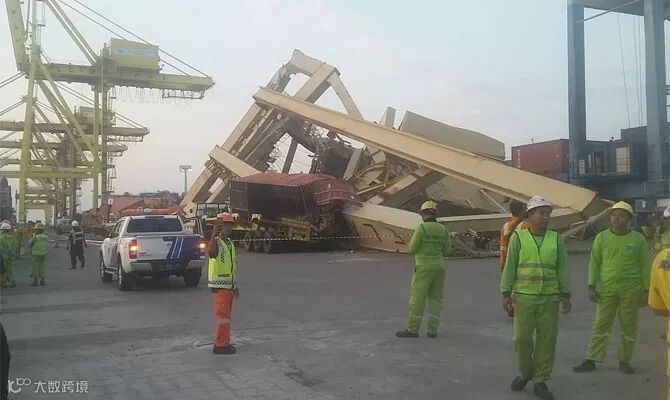 现场非常惨烈,多台吊机被毁!此次事故,预计将给印尼三宝垄港TPKS集装箱码头的正常运营将带来严重影响!近期,有出货到该码头的,请务必注意,可能会出现延期或改港!