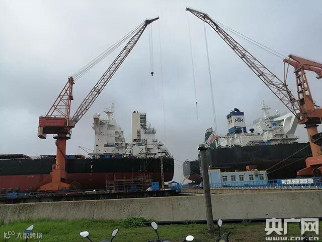 右侧船舶为等待加装脱硫装置的船舶(央广记者 佟亚涛 摄)