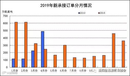 2019年1~4月份,国际航运市场整体处于低位水平,全球新船订单量持续下降。4月当月,波罗的海干散货指数(BDI)回升明显,我国新承接船舶订单量降幅收窄,造船完工量继续增长。重点监测企业工业总产值等主要经济指标同比增长。