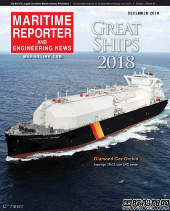 国际知名船舶杂志Maritime Reporter & Engineering News“2018年世界名船”榜单出炉。自1939年开始,MaritimeReporter & Engineering News每年都会发布一份“年度世界名船”的榜单。在2018年第12期中,该杂志公布了2018年共16艘世界名船名单。但与往年不同的是,Maritime Reporter & Engineering News今年并未在这些新船中筛选出年度10大名船榜单。
