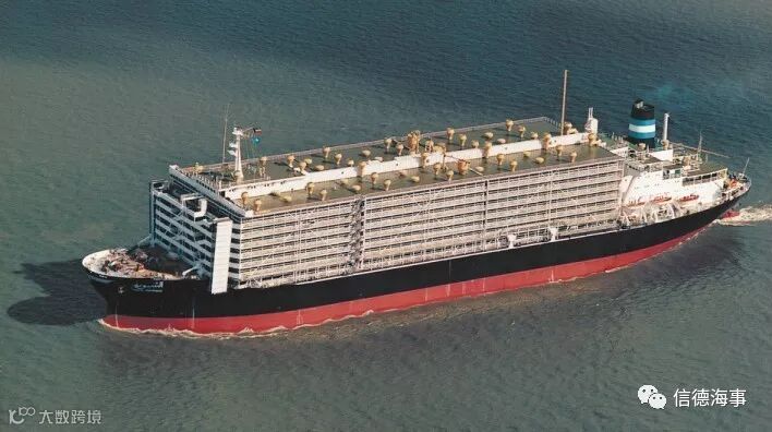 液化气船:她们是一种极为专业化的“油轮”。主要有两种为人熟知的类型,LNG(液化天然气船)和LPG(液化石油气船)。液化天然气的成分主要是甲烷,它需要在零下162摄氏度高压环境下运输,以保证甲烷处于液体状态。液化石油气船运输的主要是丙烷和丁烷,也会运输一些氨气。这种全密封式船需要将气体保持在10-12个大气压下,温度也将达到零下50摄氏度。液化气船的尺寸通常会以立方米为单位按体积能力声明。LPG船小型的大概在500立方米,大型的为85000立方米,而LNG船最大则能达到265000立方米。一般来说,Q-Flex(卡塔尔灵便型)船会设计为210000至217000立方米,而Q-max(卡塔尔型)船会设计为261700-266000立方米,这个是由卡塔尔船级社提供的最大尺寸。