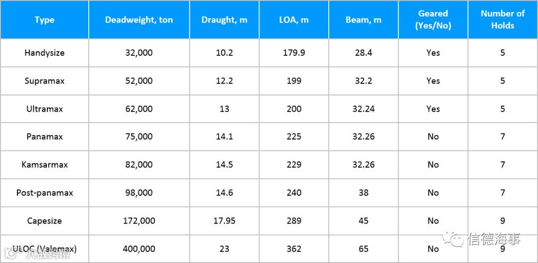 Handymax型船载重吨在40000t到50000t之间,也配有5个货舱。但是这种船型普遍较老了因为现在很少新造船在这个载重吨范围。