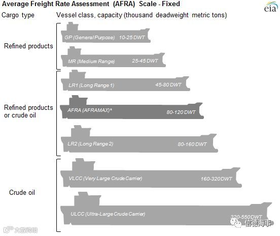 就大小而言,成品油和原油油轮主要可以分为以下几个船型: