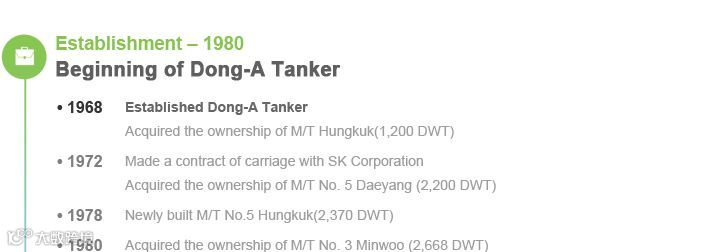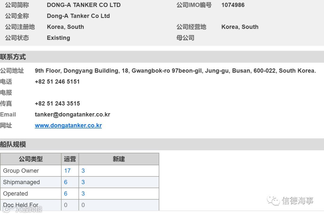 据公开资料显示,Dong-A由Lee Myung-Jae 成立于 1968年, 成立初期为一家从事中国、日本和韩国之间短途化学品油轮公司。