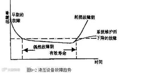 液压系统是一个由许多设备元件、管道组成的复杂的系统,液压设备随着使用时间的长短出现故障的几率如下图所示,