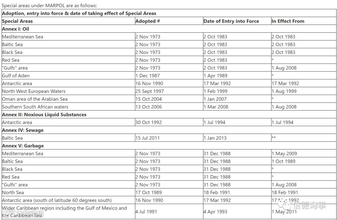 《国际防止船舶造成污染公约》各附则项下特殊区域的最新清单。