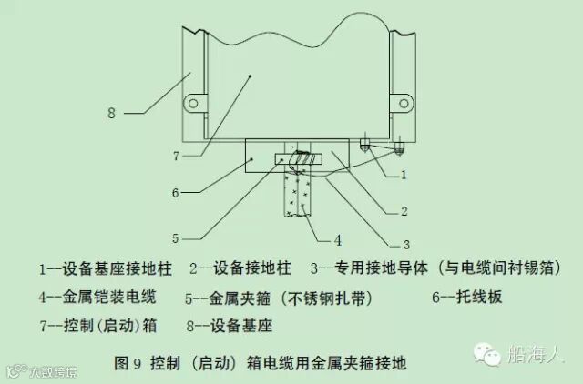 b) 控制(启动)箱电缆用金属夹箍接地,见图9。