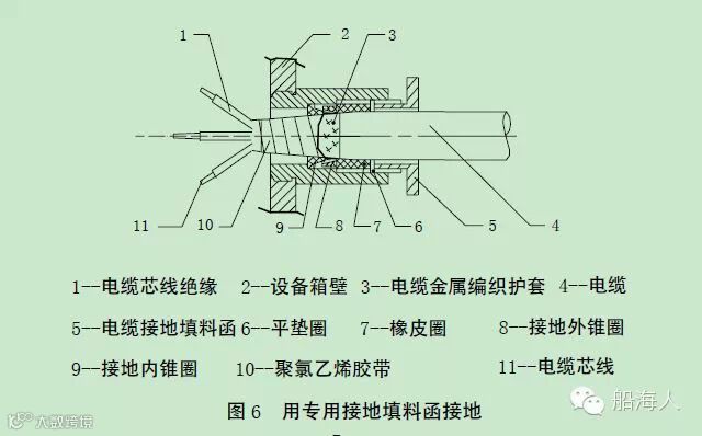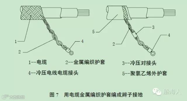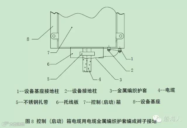 a) 控制(启动)箱电缆用电缆金属编织护套编成辫子接地,见图8。