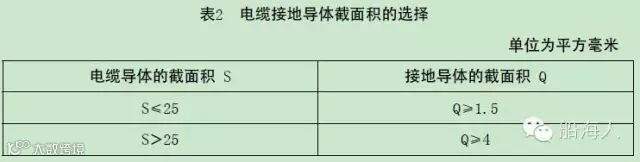4.4 接地导体的截面积Q与电缆导体的截面积S间的关系应符合表2规定。成束电缆如采用公共接地导体接地,其截面积应按该束电缆中最大载流导体的截面积来选择。