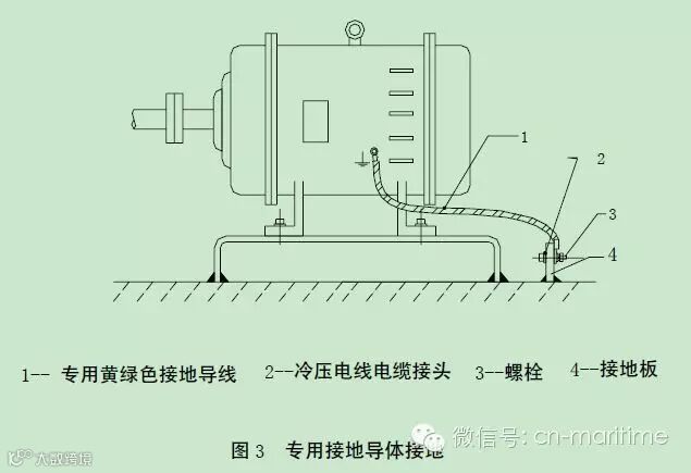 3.6 当电气设备直接紧固在船体金属结构有可靠电气连接的基座(或支架)上时,可不另设置专用接地导体接地。