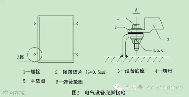 应在设备底脚与支架(或基座)之间垫以厚度不小于0.5mm、大小等于接触面积的锡箔或镀锡铜片。