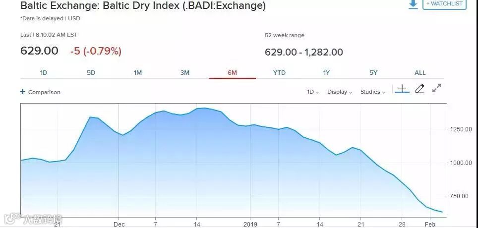 海运市场的景气与否和世界经济的波动密切相关,近期航运业重要经济指标——波罗的海干散货指数出现单边快速杀跌,暗示全球经济活动有放缓趋势,贸易环境持续恶化。