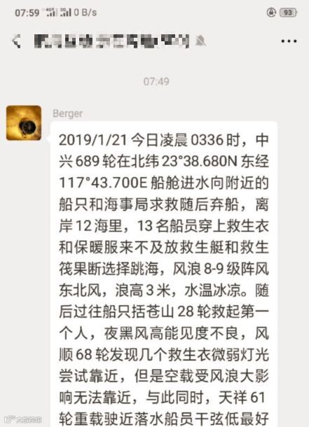 1月21日凌晨4时,福建省海上搜救中心接到险情报警,平潭籍货轮“中兴689”于当日凌晨0330时左右在漳州附近海域沉没,船上13名船员弃船逃生。经全力搜救,截至21日1400时,已有11人获救,仍有2名失踪。