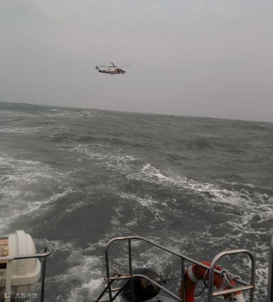 6时57分,直升机到达现场,此时现场风浪有5-6米高,经现场仔细搜索,发现有5名船员身着救生衣在海面上漂浮,其中1名已经体力不支,出现低温症情况。救生员立即下水进行救援。
