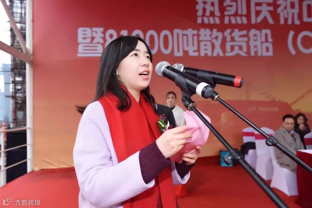 教母袁晓雨女士成功将10号8.2万吨散货船命名为"JY RIVER "轮并剪彩,祝愿该轮逐风踏浪、勇创辉煌,为船东公司带来滚滚财源和好运。