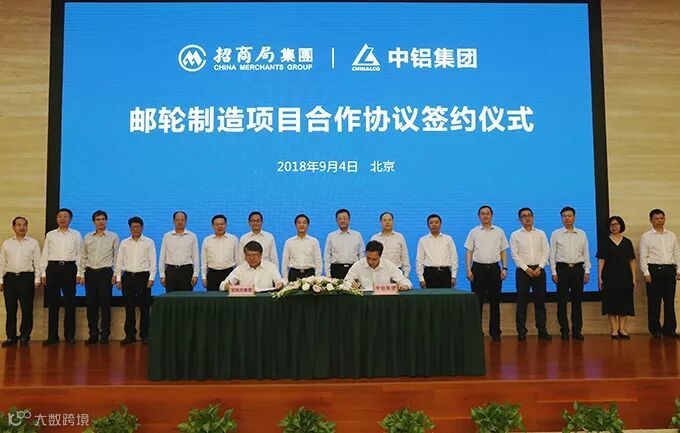 9月4日下午,北京,招商局集团与中国铝业集团有限公司(简称“中铝集团”)签署邮轮制造项目合作框架协议。双方将本着互惠互利、共同发展的原则,围绕邮轮制造业深化战略合作,加快培育和打造中国豪华邮轮制造产业,推动我国豪华邮轮制造产业发展,为加快国家产业转型升级做出更大贡献。