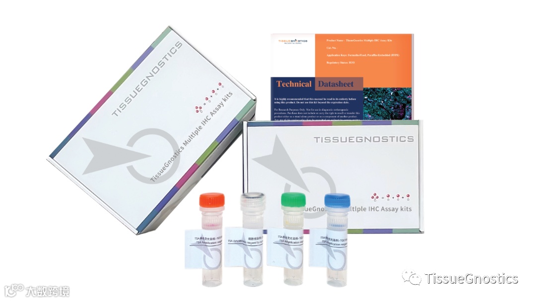 本文多重免疫荧光染色使用到TissueGnostics 多色解决方案六色套装(石蜡切片)试剂盒。