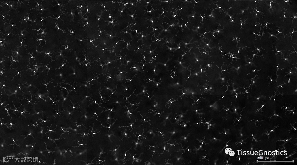 1. 利用TissueFAXS系统进行玻片荧光的全景扫描。