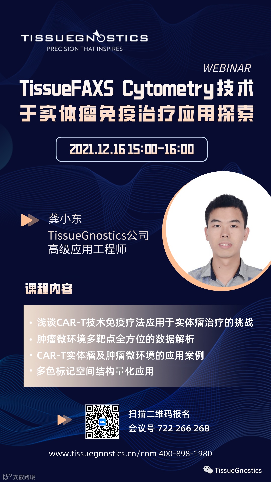 12月16日的直播课程中,TG公司高级应用工程师龚小东博士将通过两篇在国际知名期刊刊载的研究论文,带大家探索TissueFAXS Cytometry技术在CAR-T实体瘤以及肿瘤微环境的相关应用,好学的你还不赶快报名吗~