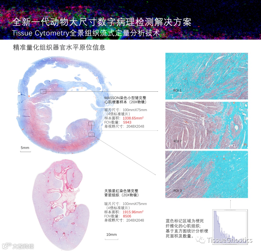 TissueFAXS 系统将流式散点图分析技术与图像原位信息相结合,既获得了准确单细胞级别的定量数据,更深度结合组织原位的位置信息,可进行组织结构定量、组织区域筛分定量、目标蛋白或靶细胞在组织中的分布情况等定量分析,不仅提供了更多面的分析数据,也为未来的研究提出了新的解决思路和研究方向。