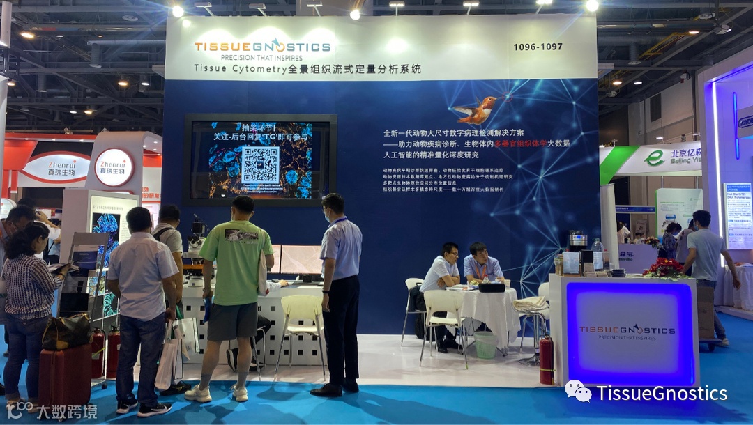 展会期间,TG公司展示了全新一代动物大尺寸数字病理检测解决方案,并现场设置产品体验区和小课堂。多角度为您呈现“全景组织流式定量分析平台”及多种生命科学领域解决方案。