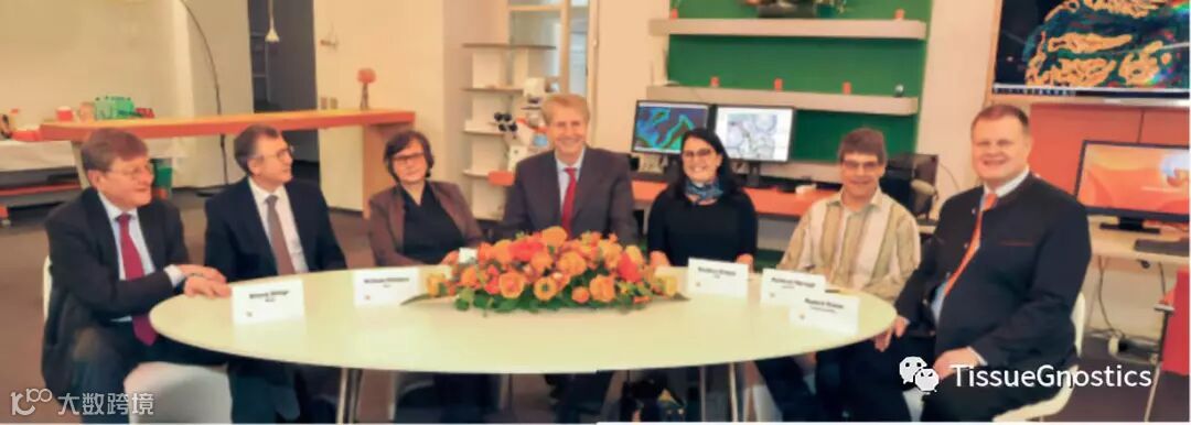 图中分别为:Renate Kain(Head of Department of Pathology, Medical University of Vienna)Bettina Zelger(Former Headof Department of Pathology, Medical University of Innsbruck)Helmut Klocker(Head of Urology Research, MedicalUniversity of Innsbruck)Georg Stingl (Former Headof Department of Dermatology, Medical University of Vienna)Richard Moriggl (ScientificDirector Ludwig Boltzmann Institute for Cancer Research, Vienna)Rupert Ecker (CEOTissueGnostics ) Moderator:Oliver Jonke (medianet Editor)