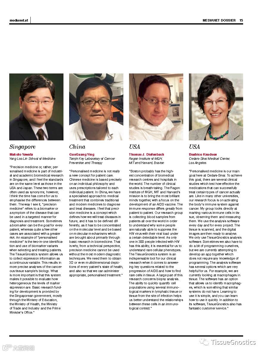 近日,Medianet杂志与TissueGnostics公司联合发行主题为“攻克癌症,个体化医疗”的专题。此外,该篇专题也已同步更新到Medianet.at网站中(具体请戳文章结尾原文链接)。