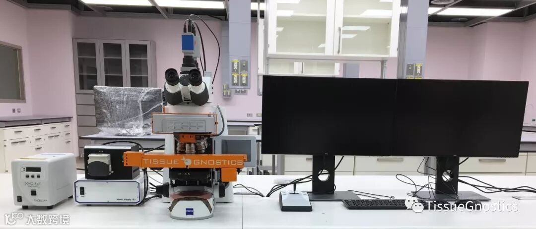 奥地利TissueGnostics公司TissueFAXS BoneMarrow骨髓自动化扫描系统也已于6月11日在该实验中安装完毕。(图为我公司总部技术工程师Stefan正在安装调试机器)