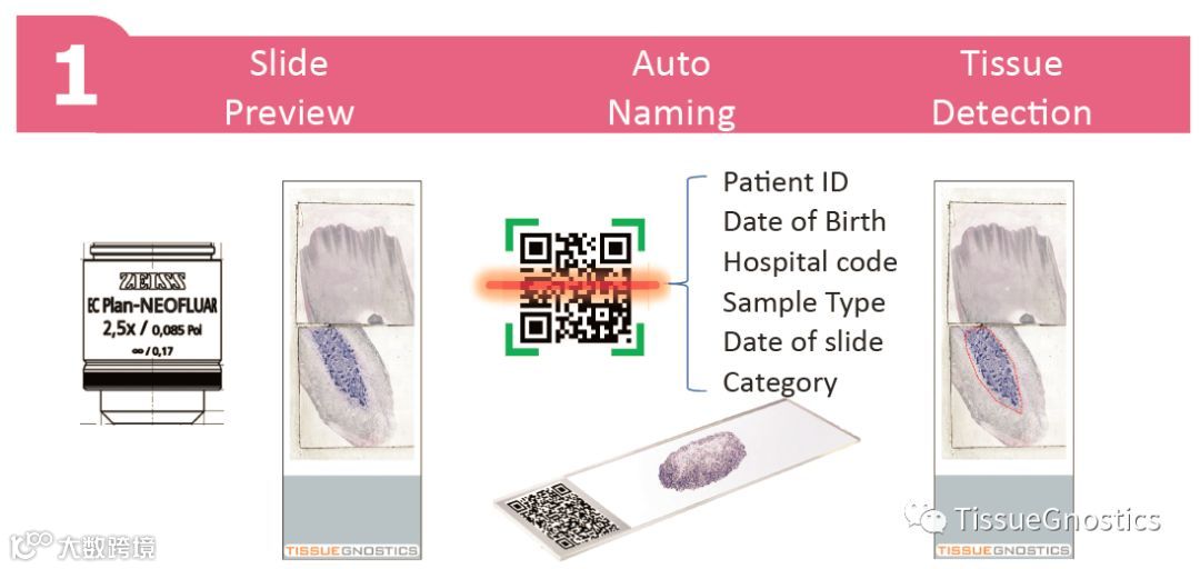 TissueFAXS BoneMarrow骨髓自动化扫描系统为临床骨髓穿刺样本提供了从扫描到分析的一键式整体解决方案,真正实现无人值守化处理。从骨髓抹片的玻片信息识别,骨髓区域全景扫描图像,全景图像内目的细胞自动辨识,目的细胞100x油镜图像自动获取,单细胞图像切割、编号以及单细胞metadata数据输出。为骨髓细胞AI辨识、分类提供清晰且丰富的单细胞数据。