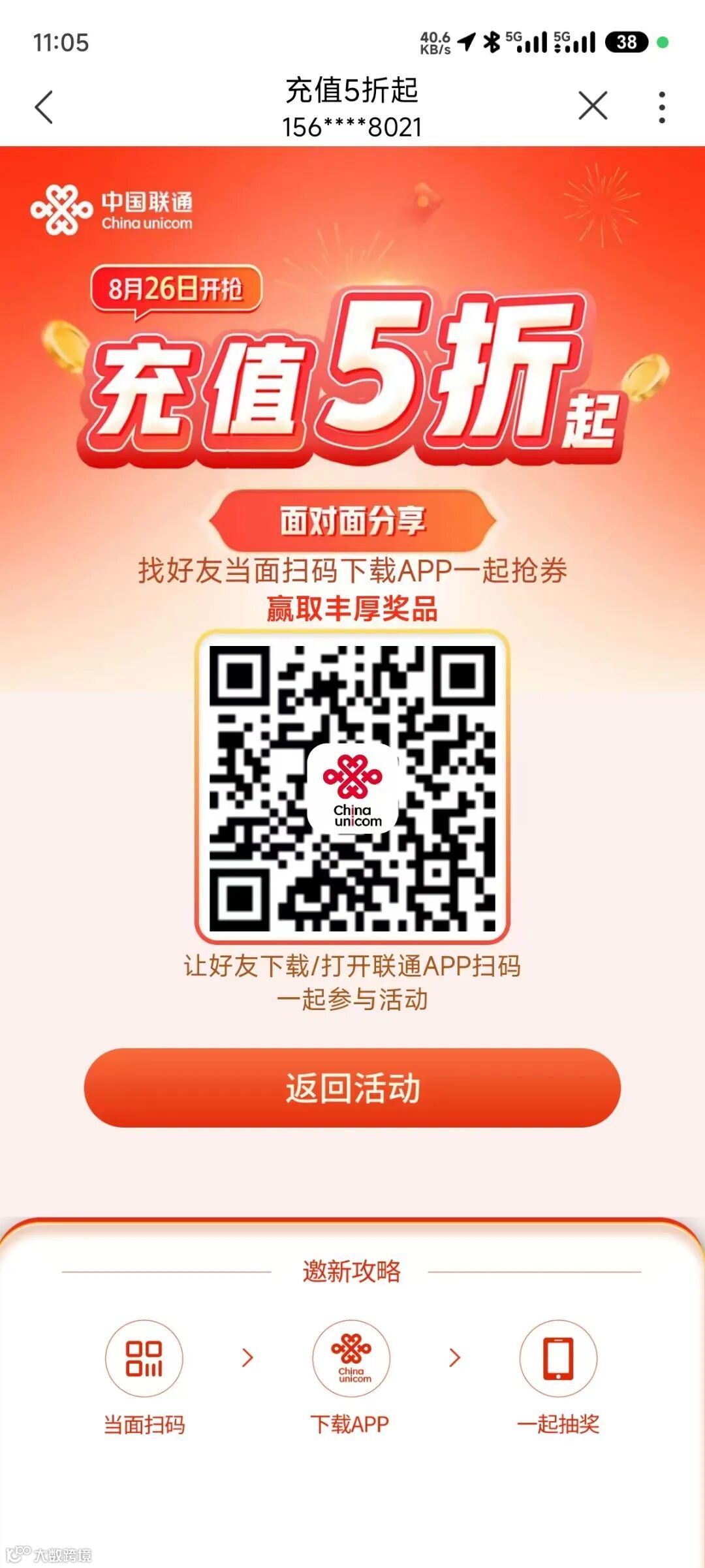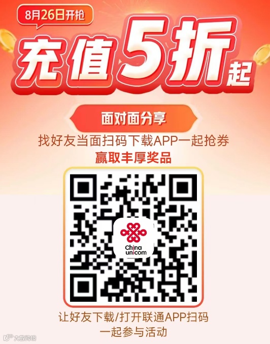 活动名称:中国联通APP 8月“充值5折起【复制链接浏览器打开】