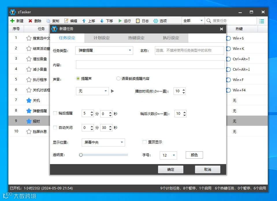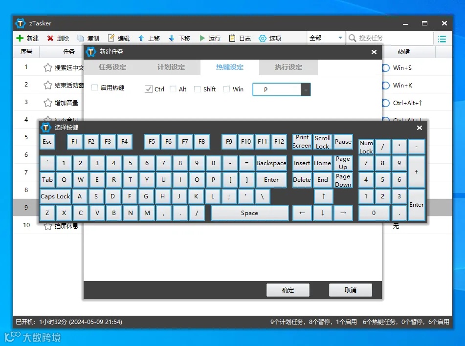 热键设定就是添加一个用于打开任务的快捷键,以便随时操作。
