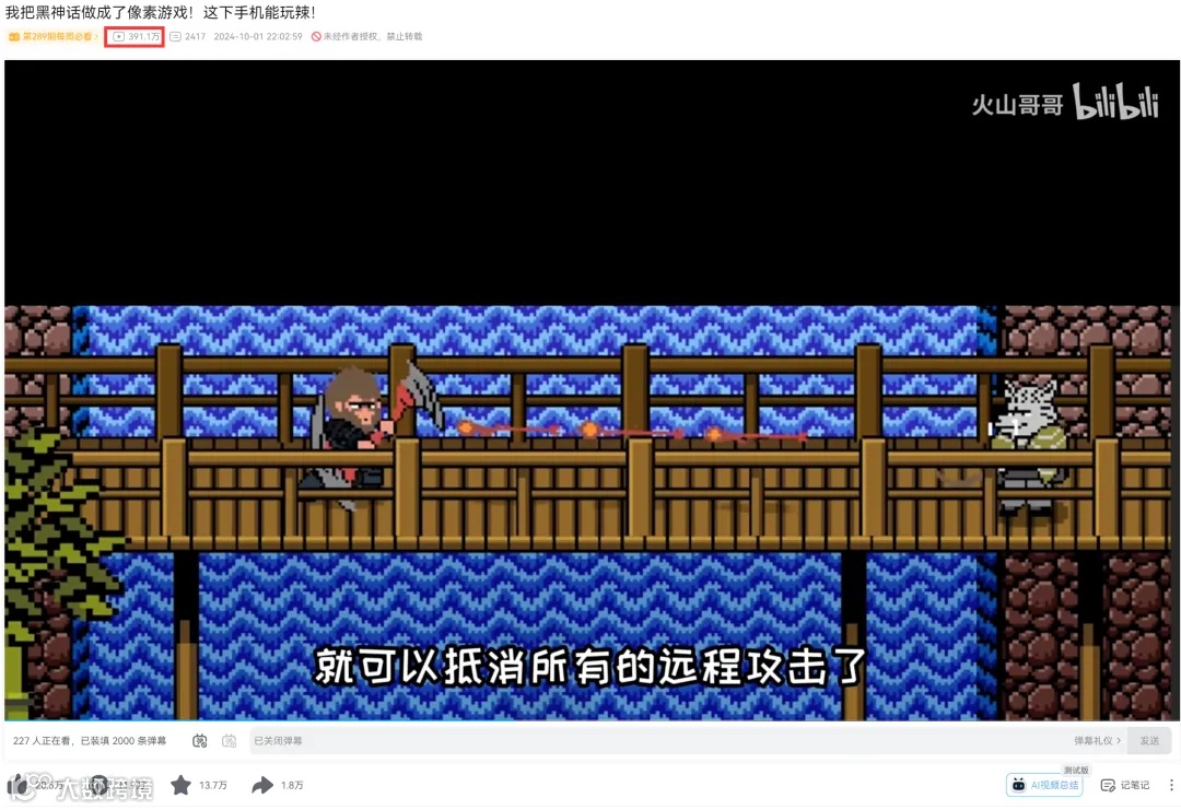 《黑神话:悟空像素版》在B站上已经拥有超过350万的播放量,点赞数近19万,备受赞誉。如果你对这款游戏感兴趣,可以前往B站观看。